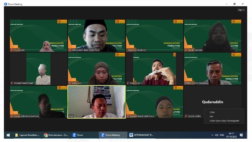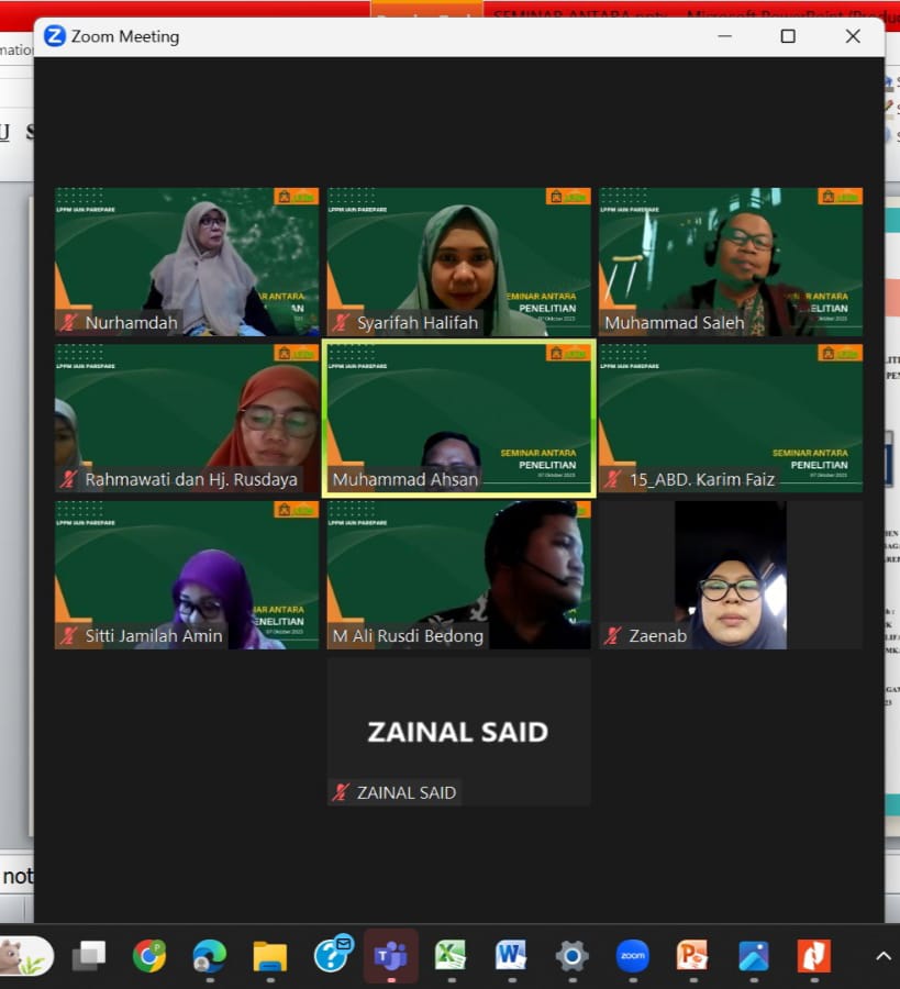 Humas IAIN Parepare- Lembaga Penelitian dan Pengabdian kepada Masyarakat (LPPM) Institut Agama Islam Negeri Parepare menggelar Seminar Antara Penelitian 2023 secara daring melalui zoom meeting, Sabtu (07/10/2023)