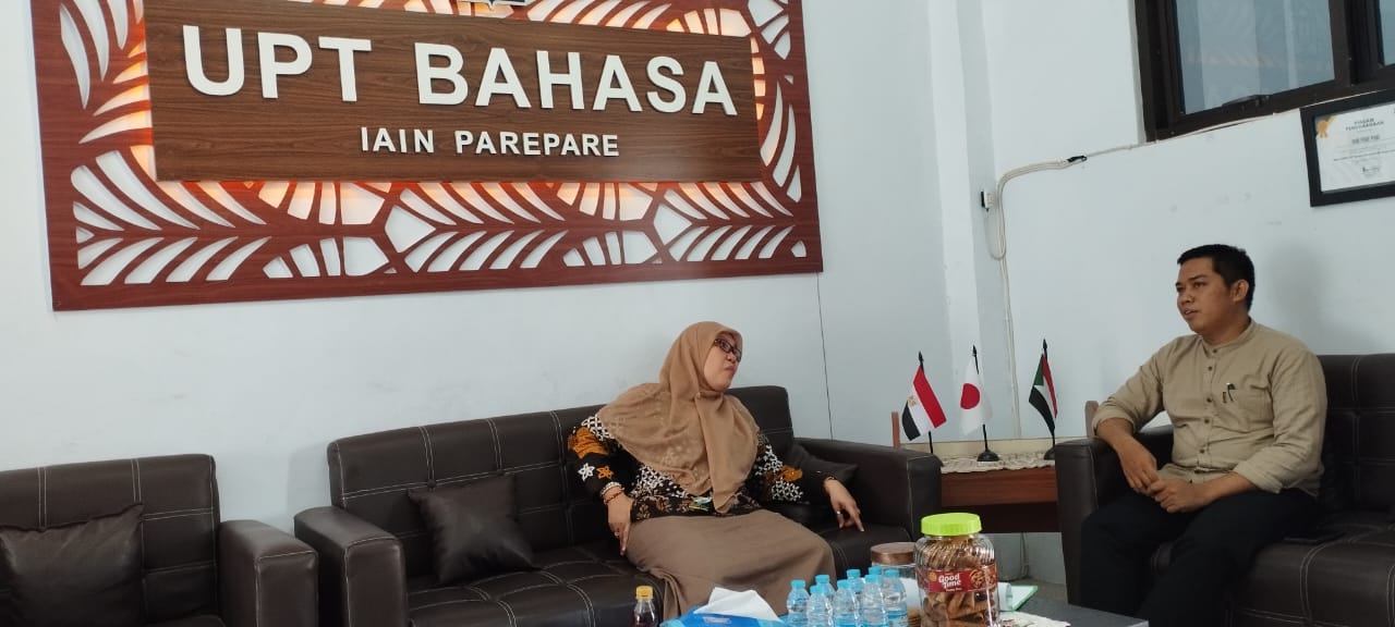 Humas IAIN Parepare---Berkembangnya program kerja UPT Bahasa IAIN Parepare yang telah terlaksana pada tahun 2023, menarik minat Tim UPT Bahasa Universitas Islam Makassar untuk melakukan kunjungan kerja ke UPT Bahasa IAIN Parepare pada Jumat (29/09/2023) di ruang Kepala UPT Bahasa Gedung Laboratorium Terpadu Lantai II. Tujuan dari kunjungan tersebut adalah pelaksanaan benchmarking tentang tata cara pengelolaan pengembangan Pusat Bahasa, dan sekaligus melakukan penawaran kerja sama untuk selanjutnya melakukan kolaborasi program-program pengembangan bahasa.
