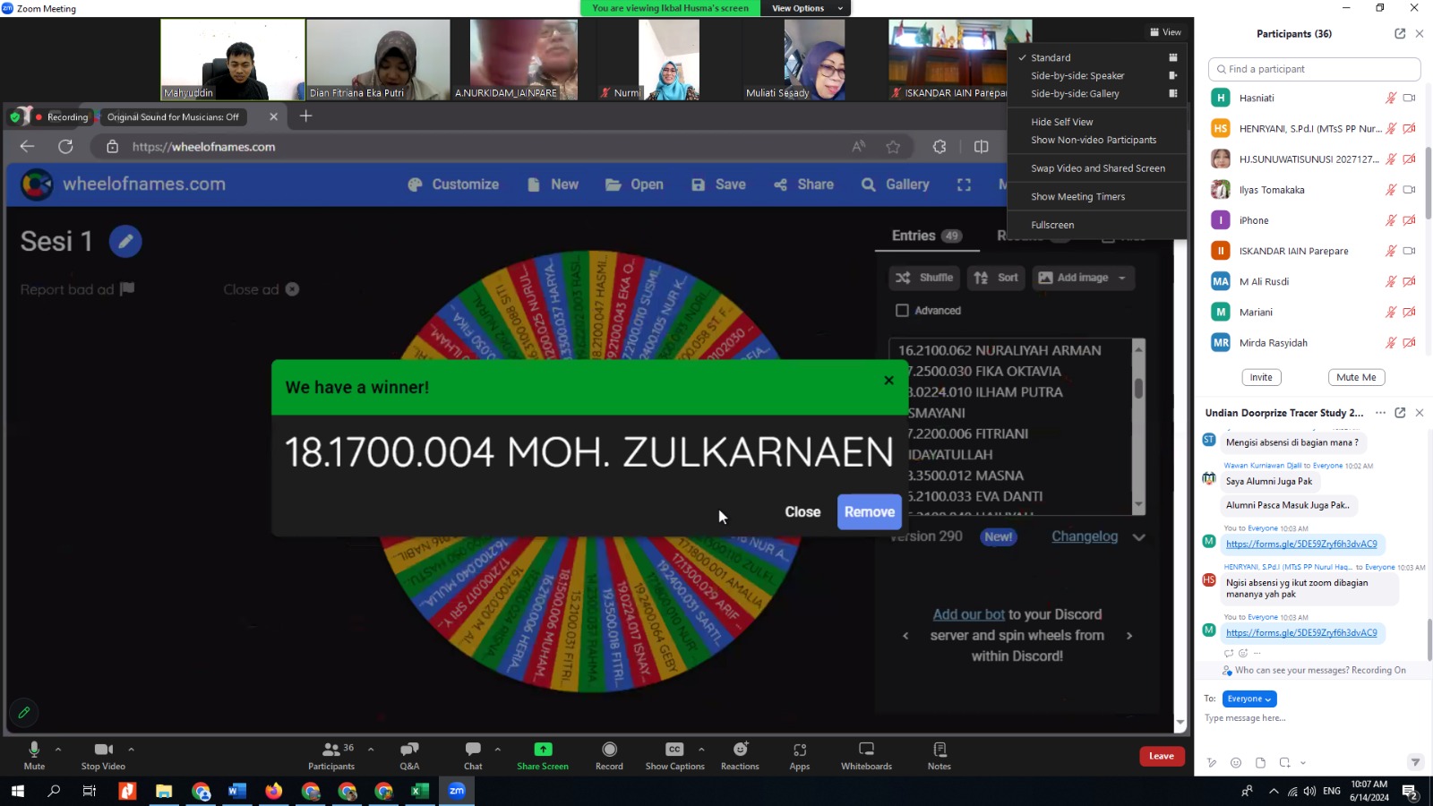 Humas IAIN Parepare_ Pusat Pengembangan Mutu, Karier Mahasiswa dan Alumni pada Lembaga Penjaminan Mutu (LPM) IAIN Parepare melaksanakan undian tracer study, Jum’at (14/06/2024) melalui zoom meeting. Kegiatan ini merupakan bentuk apresiasi terhadap alumni yang telah berpartisipasi dalam pengisian tracer study 2024.