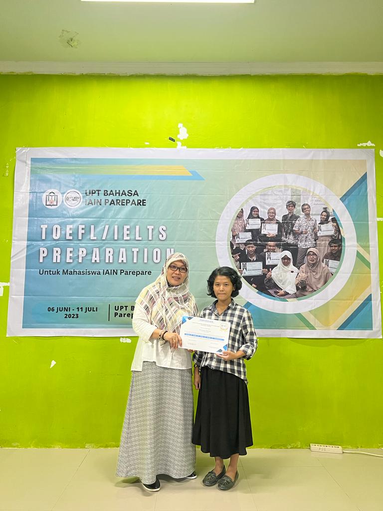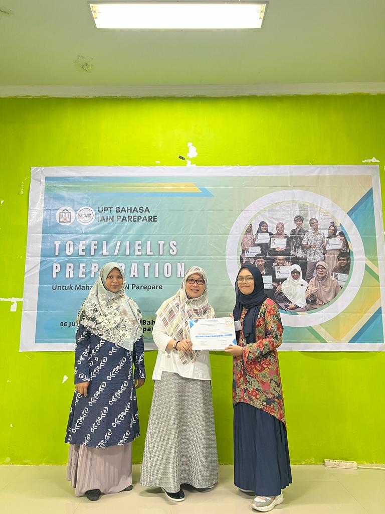 Pelatihan yang dilaksanakan sejak tanggal 6 Juni 2023 sampai 11 Juli 2023 tersebut menunjukan peningkatan kemampuan mahasiswa dalam bidang IELTS, yang terlihat dari score IELTS mahasiswa. Sebagai bentuk apresiasi kepada peserta yang telah mengikuti pelatihan IELTS, UPT Bahasa IAIN Parepare memberikan bantuan biaya administrasi kepada 6 orang peserta dengan nilai terbaik untuk mengikuti Real Test IELTS di Golden Gate Makassar. 6 orang peserta tersebut adalah Sakhmalsyah Bahtiar, Revit Rendra W, Nur Isma Padila, Nurul Khafifa Rusni, Anggi Safitri, dan Muhammad Taufiq M.