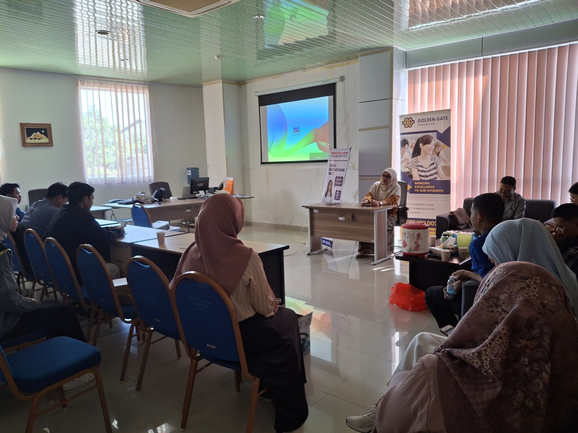 Setelah pembukaan, Tim Golden Gate yang terdiri dari A. Aksan Marlan, selaku IELTS Test Center Manager Under British Council Indonesian Foundation, dan Muhammad Rum, Manager/Teacher di Golden Gate Education, melanjutkan dengan materi penutup kegiatan IELTS preparation.