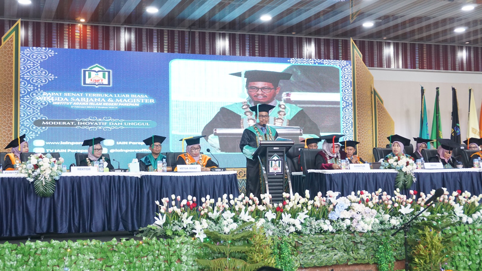 Humas IAIN Parepare--- IAIN Parepare menggelar wisuda periode 1 tahun 2024. Sebanyak 800 wisudawan/wisudawati dikukuhkan sebagai sarjana dan magister oleh Rektor IAIN Parepare Prof. Dr. Hannani. Acara wisuda itu diselenggarakan di Gedung Auditorium IAIN Parepare, Sabtu (17/2/2024).