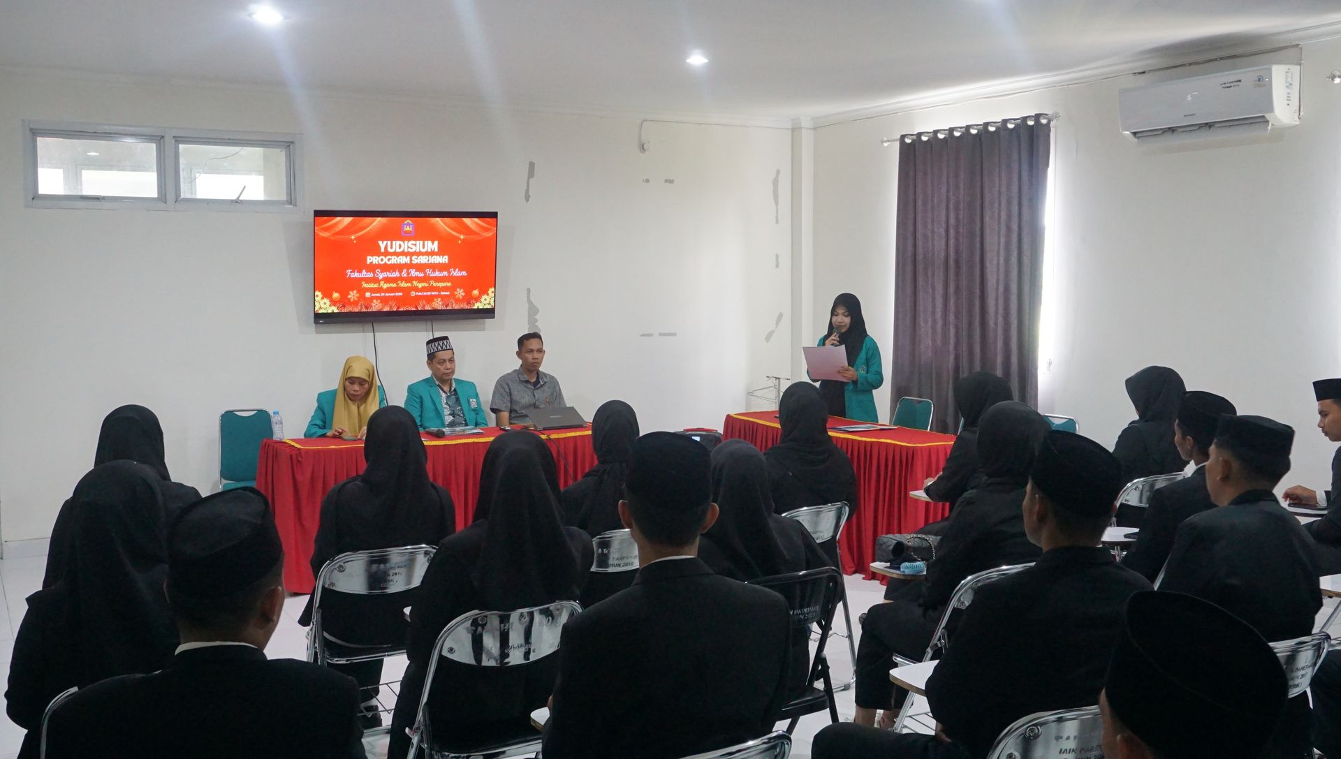Humas IAIN Parepare -- Langit Parepare siang itu terasa teduh, seakan turut menyaksikan momen penuh makna di ruang seminar Fakultas Syariah dan Ilmu Hukum Islam (Fakshi) IAIN Parepare. Jumat, 24 Januari 2025, sebanyak 60 mahasiswa dari empat program studi diyudisium dalam dua tahap. Wajah-wajah mereka memancarkan kebahagiaan dan tekad, meski tak sedikit yang tampak merenung, mengenang perjalanan panjang di bangku kuliah.